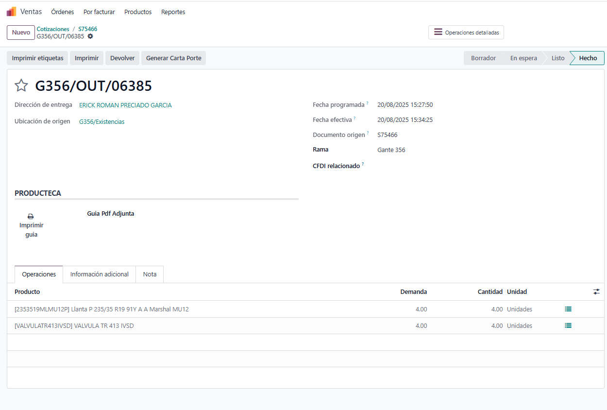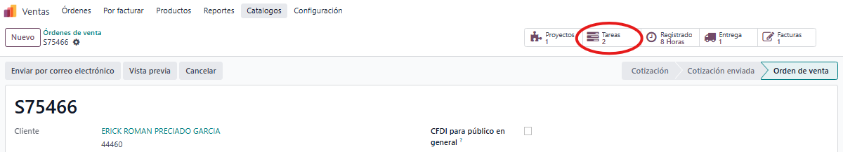 Al guardar la cotización se genera una orden de venta