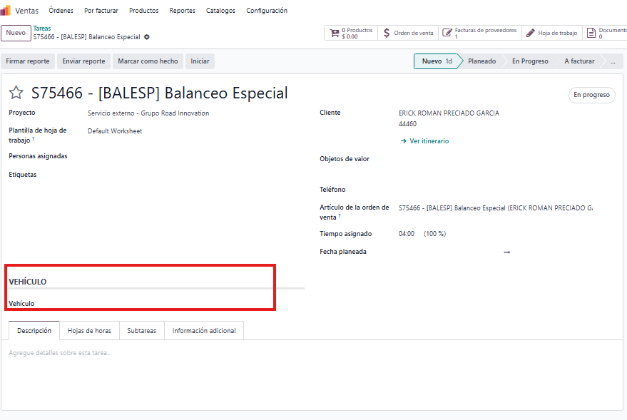 Asignan las tareas al montador y las horas dandole click en tareas